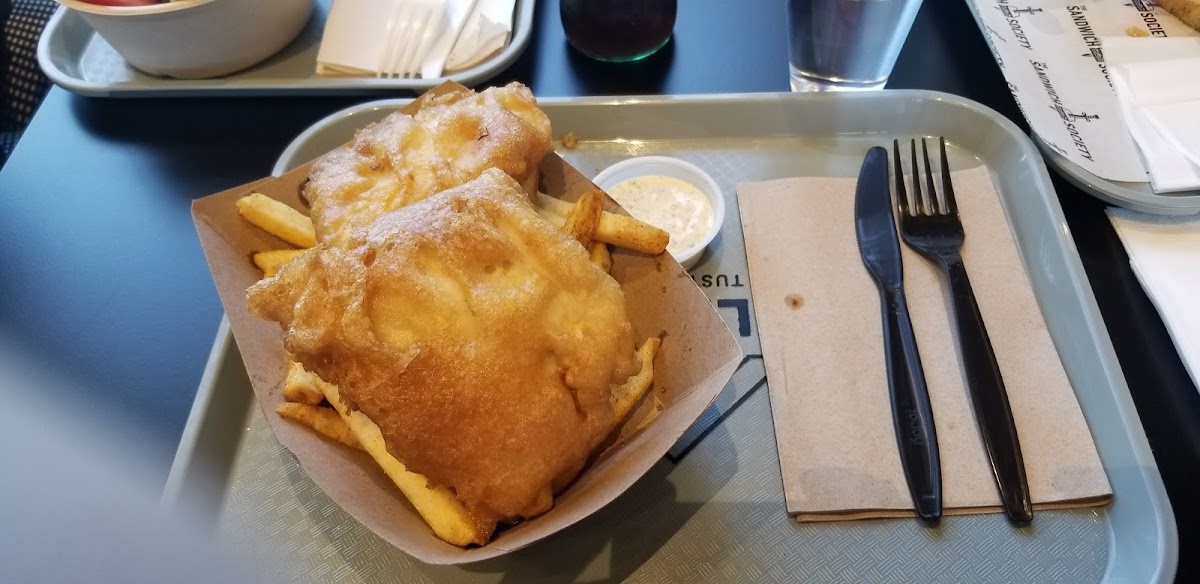 It was fun! Cool atmosphere! I had the pho which was ok. Not great so next time I'll try something different! They have burgers, tacos, Vietnamese, Greek, Slapfish, pizza, fried chicken, alcohol, and coffee!
